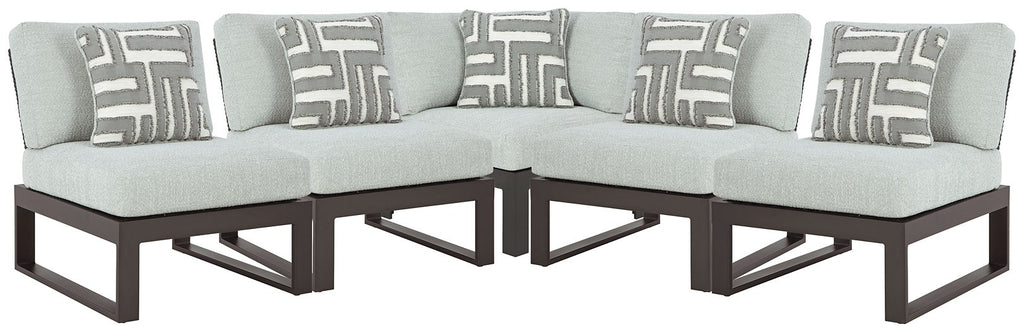 Sleek, contemporary style meets outdoor living in this outdoor package. Its clean-lined black aluminum frames and resin wicker backs expertly balance good looks and longevity. And the enhanced UV resistance of Nuvella+™ fabric keeps the cushions light and bright, weathering the seasons beautifully. With this set on the back porch or poolside, you can confidently curate a luxe vibe.